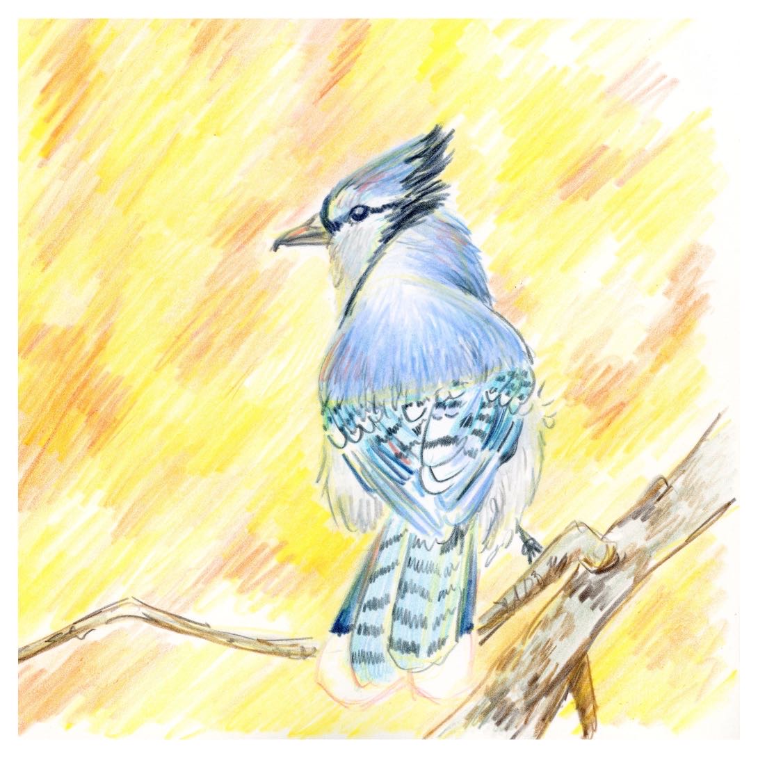 I thoroughly enjoyed this whole process. I reconnected with the basic building blocks of my art simply by taking a tool and playing. During the time I was making these pieces, I did have a slump with my mental health and felt blocked for a couple of days but it was, as it always is, therapeutic to pick up my coloured pencils and draw that blue jay for day 5 once I felt ready to create again.